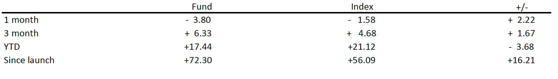 Past performance is not an indication of future results. This product is not a collective investment within the meaning of the Swiss Federal Investment Fund Act (LPCC) and is not subject to the authorization or supervision of the Swiss Financial Market Supervisory Authority (FINMA). Investors are also exposed to the risk of insolvency of the issuer (AA). This Certificate is actively managed on a discetionary basis and has a dynamic structure.