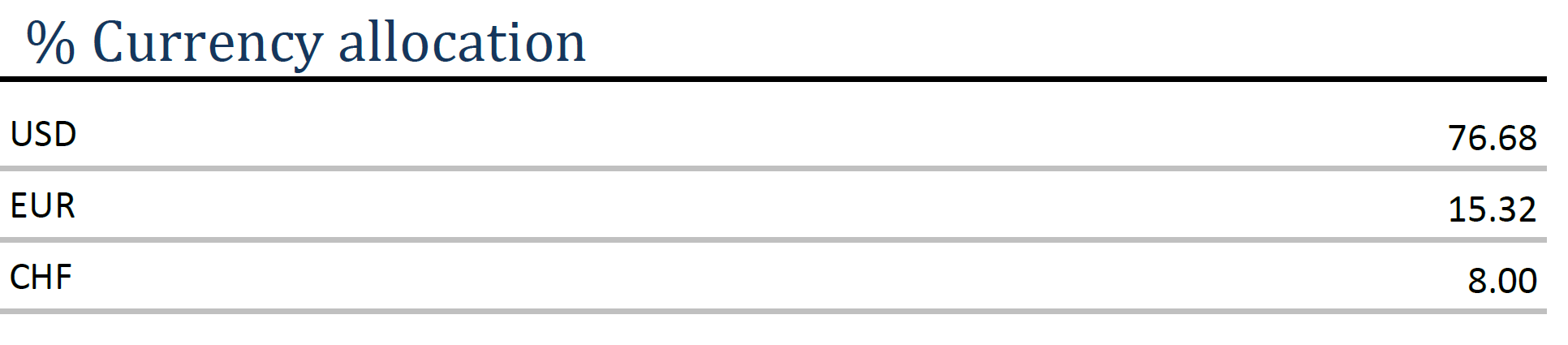 Currency allocation %